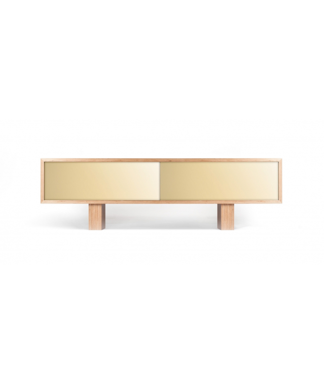 Caisson : Placage Bois - Vernis Mat - Noyer Pietement : Placage Bois - Vernis Mat - Noyer Portes : Laiton Brossé - -